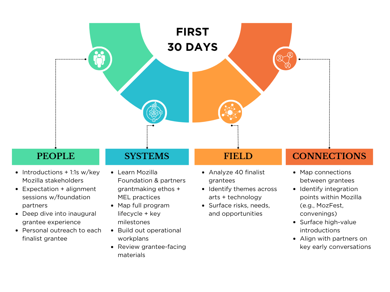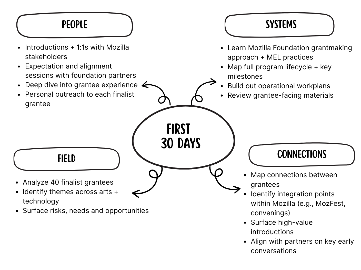 I’d like to share how I might approach the first 30 days of the Program Officer, Arts & Technology role.