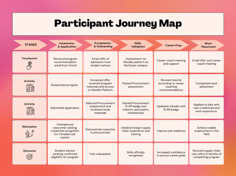 Solution: Developed targeted workforce integration interventions and supports: digital PLAR assessment platform to validate existing supply chain knowledge, skills, and training paired with career coaching, industry membership, and work placements.
